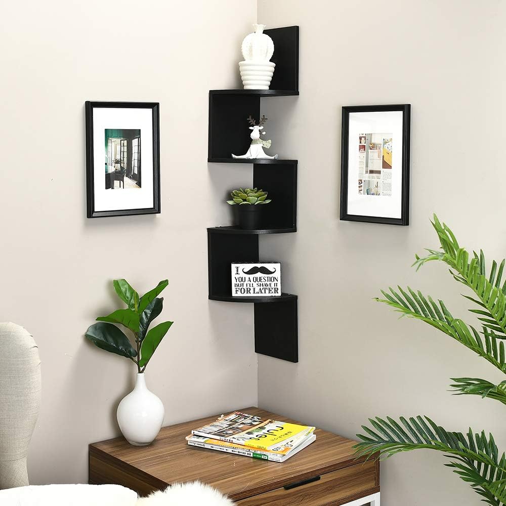Wood corner 5 tiers wall shelf zig zag wooden shelves wooden mount (white). Convenient 1.this 5 tier wall mount corner shelves home decor floating shelves wall shelves wall art wall shelf wall. This wood corner shelf wall mount weight:12.6 pounds. 5 tier large corner wall mount shelf zig zag dvd cd storage display decor white.