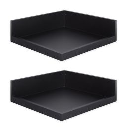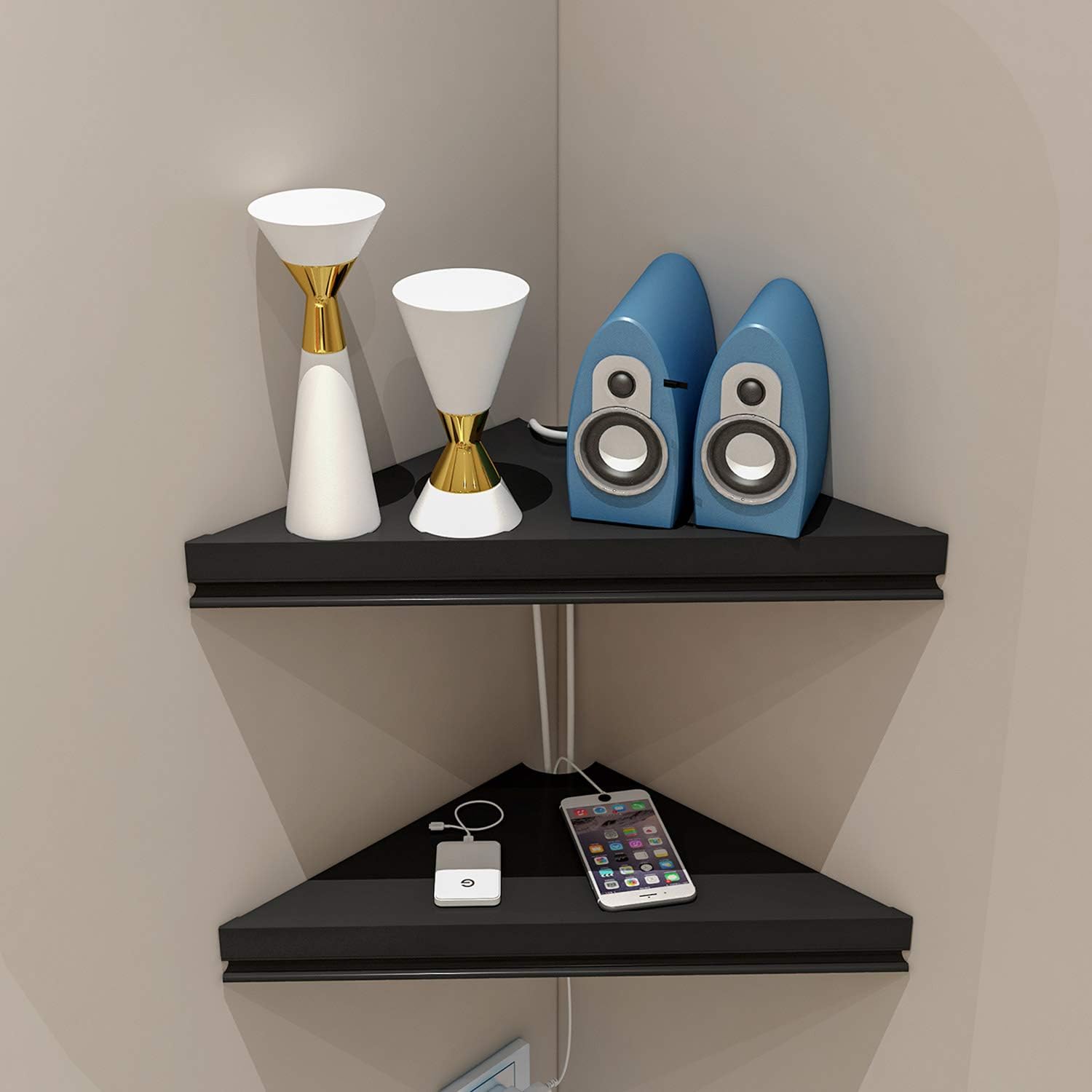 In lieu of nightstands, try adding a unit on each side of the bed. 3 tier corner mounting shelf wall mount floating home decor display storage rack. Black floating corner shelves furniture. Place a table lamp on the surface, and stash your current read.